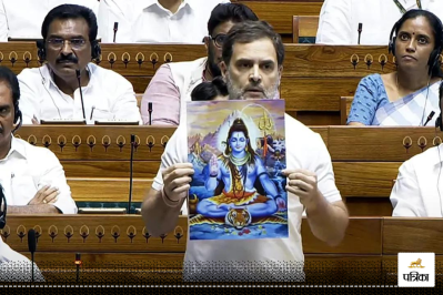 Rahul Gandhi: लोकसभा में विपक्ष के नेता राहुल गांधी ने सोमवार को कहा कि क्या भगवान शिव के चित्र को नहीं दिखाया जा सकता है। भगवान शिव अभय मुद्रा में होते हैं। गुरु नानक जी अभय मुद्रा में होते हैं। भगवान महावीर का अभय मुद्रा वाला चित्र भी दिखाया। उन्होंने कहा कि सब महा पुरुषों ने अहिंसा की बात की, डर मिटाने की बात की और कहा कि डरो मत डराओ मत। अभय मुद्रा का मतलब है कि डरो नहीं।