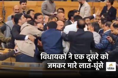 Jammu and Kashmir Assembly: जम्मू-कश्मीर विधानसभा में गुरुवार को अनुच्छेद 370 के मुद्दे पर जमकर हंगामा हुआ। विधायकों ने सदन में हाथापाई की और एक-दूसरे पर लात-घूंसे बरसाए। अवामी इत्तेहाद पार्टी के विधायक और इंजीनियर राशिद के भाई खुर्शीद अहमद शेख द्वारा अनुच्छेद 370 पर बैनर दिखाए जाने के बाद हंगामा शुरू हुआ। इसके बाद विपक्ष के नेता सुनील शर्मा ने बैनर दिखाए जाने पर आपत्ति जताई। विवाद के तुरंत बाद मार्शलों ने हस्तक्षेप किया और लड़ रहे विधायकों को अलग किया।
