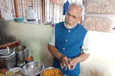 Pani Puri Seller Who Looks Like PM Modi : लोकसभा चुनाव (Lok Sabha Elections 2024) के लिए दो चरणों के लिए मतदान संपन्न हो चुके हैं। अभी और पांच चरणों के मतदान होने बाकी हैं। देश के मतदाता किस पार्टी को चुनाव में विजयी बनाती है, यह तो चार जून को मतों की गिनती के बाद ही पता चल पाएगा। कौन सी पार्टी चुनाव जीतेगी और वह किसे अपना प्रधानमंत्री बनाएगी, यह भी चुनाव के परिणाम आने के बाद ही पता चल पाएगा। हालांकि, भारतीय जनता पार्टी (BJP) के सामने प्रधानमंत्री कैंडिडेट को लेकर कोई संशय नहीं है। वह प्रधानमंत्री के बतौर नरेंद्र मोदी (PM Narendra Modi) को अपना कैंडिडेट घोषित कर चुकी है। ऐसे में सोशल मीडिया के जरिए एक वीडियो वायरल हो गया जिसमें प्रधानमंत्री नरेंद्र मोदी के हमशक्ल वाले एक शख्स सामने आया है। यह शख्स पानी पुरी बेचते हैं।