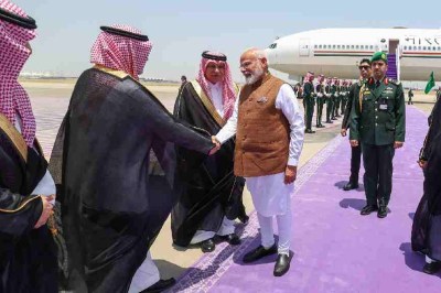 PM Modi Saudi Arabia Visit: प्रधानमंत्री नरेंद्र मोदी का जेद्दा हवाई अड्डे पर भव्य स्वागत किया गया। पीएम मोदी सऊदी अरब की दो दिवसीय यात्रा पर यहां पहुंचे हैं। उन्हें 21 तोपों की सलामी दी गई।
