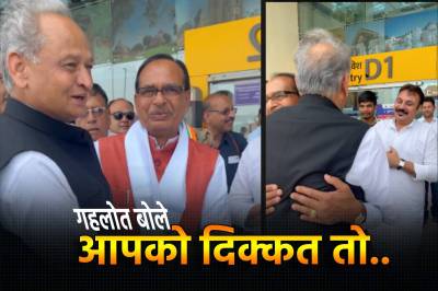 Shivraj Singh Chauhan met Ashok Gehlot: एयरपोर्ट पर शिवराज सिंह चौहान और अशोक गहलोत की मुलाकात हुई तो गहलोत ने मजाक करते हुए कहा कि हमारी साथ में फोटो आएगी तो आपको दिक्कत तो नहीं होगी।