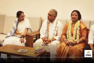 Mamata Banerjee Dilip Ghosh meeting: पश्चिम बंगाल की सिसायत में एक तस्वीर ने खलबली मचा दी है। सियासी गलियारों में इस तस्वीर को लेकर तमाम तरह की अटकले लगाई जा रही है। दरअसल, इस तस्वीर में मुख्यमंत्री ममता बनर्जी और बीजेपी नेता दिलीप घोष एक साथ नजर आ रहे हैं। इस तस्वीर में दिलीप घोष की पत्नी भी नजर आ रही है। यह तस्वीर सामने आने के बाद दिलीप घोष का विरोध होना भी शुरू हो गया है। वहीं अब बीजेपी नेता दिलीप घोष ने ममता बनर्जी से मुलाकात के बाद सवाल उठाने वालों को करारा जवाब दिया है।
