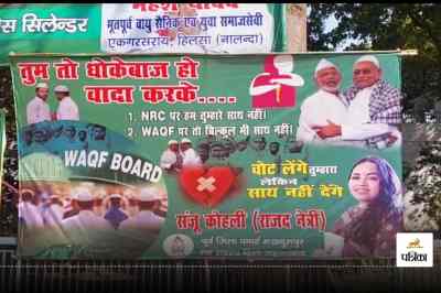 मंगलवार को पूर्व मुख्यमंत्री राबड़ी देवी के आवास के बाहर वक्फ और एनआरसी को लेकर मुख्यमंत्री नीतीश कुमार पर निशाना साधते हुए पोस्टर लगाए गए हैं। पोस्टर में मुख्यमंत्री नीतीश कुमार की तस्वीर भी है और लिखा गया है, "तुम तो धोखेबाज हो, वादा करके…एनआरसी पर हम तुम्हारे साथ नहीं। वक्फ पर तो बिल्कुल भी साथ नहीं। वोट लेंगे तुम्हारा लेकिन साथ नहीं देंगे।"