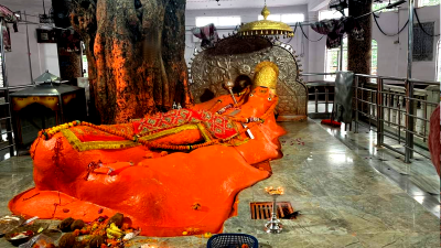 भगवान राम के परम भक्त पवन पुत्र हनुमान की यहां ऐसी दिव्य और अद्भुत, अद्वितीय प्रतिमा है जो देशभर में खासा प्रसिद्धि रखती है। खास बात ये है कि यहां विराजित पवन पुत्र हनुमान की नाभि से हर समय जल निकलता रहता है। विशाल और कई वर्षो पुराना पीपल के पेड़ के नीचे मुद्रा में लेटे हुए हनुमान विराजमान हैं। वैसे तो इस मंदिर की लीलाएं अपरंपार हैं, लेकिन यहां की सबसे विशेष मान्यता ये है कि यहां भूत, पिशाच सभी बुरी बला भगवान के दर्शन और उनके नाभि से निरंतर निकलते जल ग्रहण करते ही दूर हो जाते हैं।