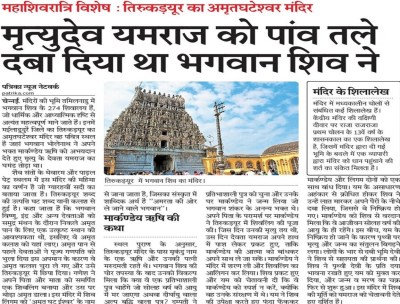चेन्नई. मंदिरों की भूमि तमिलनाडु में भगवान शिव के 274 शिवालय हैं, जो धार्मिक और आध्यात्मिक दृष्टि से अत्यंत महत्वपूर्ण माने जाते हैं। इनमें मईलाडुदुरै जिले का तिरुकड़यूर का अमृतघटेश्वर मंदिर वह पवित्र स्थल है जहां भगवान भोलेनाथ ने अपने भक्त मार्कण्डेय ऋषि को अभयदान देते हुए मृत्यु के देवता यमराज का घमंड तोड़ा था।