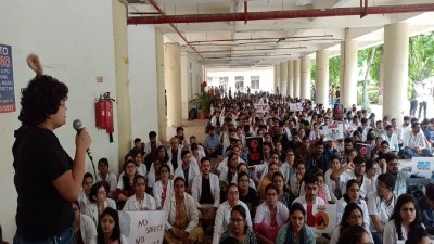 अहमदाबाद स्थित बी जे मेडिकल कॉलेज के मेडिकल के विद्यार्थियों ने पीजी हॉस्टल से लेकर केंटीन तक रैली निकाल कर न्याय की मांग की। रैली में बड़ी संख्या में महिला चिकित्सक भी जुड़ीं।अहमदाबाद: डेढ़ हजार जूनियर चिकित्सकों में आधे हड़ताल परगुजरात में शुक्रवार को राज्य भर के कई सरकारी अस्पतालों में इंटर्न, जूनियर रेजिडेंट और सीनियर रेजिडेंट डॉक्टर हड़ताल पर रहे। अहमदाबाद के सिविल अस्पताल में बी.जे. मेडिकल कॉलेज के लगभग डेढ़ हजार जूनियर चिकित्सकों में से आधे हड़ताल पर रहे। जबकि शेष ने आपातकालीन सेवाएं संभाली। इन चिकित्सकों के हड़ताल के कारण ओपीडी और वार्ड सेवाएं प्रभावित रहीं।
