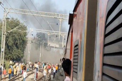 पंजाब से एक दुखद खबर सामने आई है। यहां लुधियाना से दिल्ली जा रही एक गरीबरथ ट्रेन में आग लग गई। यह दुर्घटना शनिवार सुबह सरहिंद स्टेशन के पास हुई है। शुरुआती जानकारी के अनुसार, ट्रेन की एक बोगी में शॉर्ट सर्किट के चलते आग लग गई थी। आग लगने की जानकारी मिलते ही तुरंत लोको पायलट ने ट्रेन को रोक दिया, जिसके बाद यात्री जलती हुई बोगी से उतर कर भागने लगे। इस अफरा तफरी के दौरान कई यात्रियों को चोट लगने की खबर भी सामने आई है।