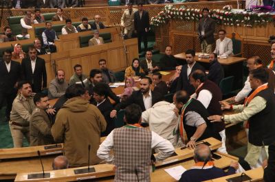 Jammu Kashmir विधानसभा में हंगामे के बीच खुर्शीद को मार्शलों ने सदन से बाहर निकाल दिया। सज्जाद लोन ने अनुच्छेद 370 की बहाली के लिए अपने संकल्प की एक प्रति रखी, जिसे उन्होंने गुरुवार को प्रस्तुत किया था। Jammu Kashmir विधानसभा में जब नेशनल कॉन्फ्रेंस के विधायक जाविद बेग उपराज्यपाल के अभिभाषण पर बोलने के लिए खड़े हुए, तो भाजपा सांसदों ने विशेष दर्जे के प्रस्ताव के खिलाफ अपना विरोध जारी रखा। उन्होंने मांग की कि प्रस्ताव वापस लिया जाए और “भारत माता की जय”, “पाकिस्तानी एजेंडा नहीं चलेगा” और “अलगाववादी एजेंडा नहीं चलेगा” के नारे लगाए। जैसे ही कुछ भाजपा सदस्यों ने विरोध के बीच वेल में जाने का प्रयास किया, उन्हें मार्शल ने सदन से बाहर कर दिया। बाकी भाजपा विधायकों ने बहिर्गमन कर दिया।