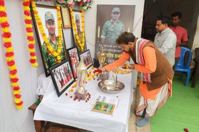 शहीद के चित्र पर पुष्प अर्पित कर श्रद्धाजंलि देते कुसमारिया।