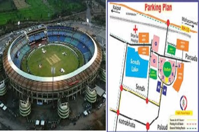 टाटीबंध से रिंग रोड-1 होकर पचपेढ़ीनाका, तेलीबांधा थाना तिराहा नेशनल हाइवे क्रं-53 होकर सेरीखेड़ी ओवरब्रिज से नया रायपुर मार्ग होकर स्टेडियम तिराहा से सांई अस्पताल रोड होकर सत्यसांई अस्पताल पार्किंग व सेंध तालाब पार्किग में अपना वाहन पार्क कर स्टेडियम पैदल पहुंचेगे।