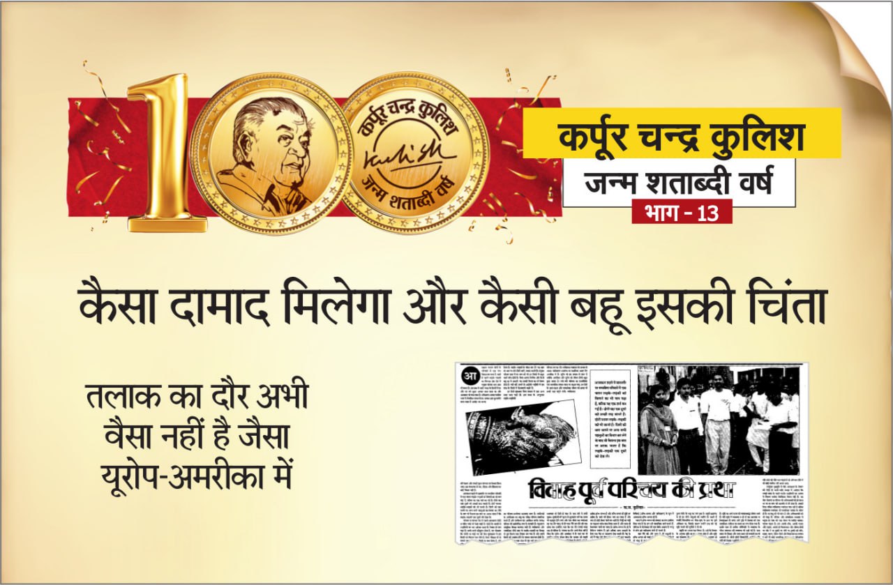 पत्रिका समूह के संस्थापक कर्पूर चंद्र कुलिश जी के जन्मशती वर्ष के मौके पर उनके रचना संसार से जुड़ी साप्ताहिक कड़ियों की शुरुआत की गई है। इनमें उनके अग्रलेख, यात्रा वृत्तांत, वेद विज्ञान से जुड़ी जानकारी और काव्य रचनाओं के चुने हुए अंश हर सप्ताह पाठकों तक पहुंचाए जा रहे हैं।