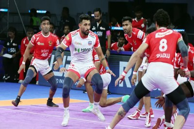 बहरहाल, यूपी ने पिछले मैचों की तुलना में अच्छी शुरुआत की। कप्तान सुमित और गुमान ने लगातार अंक लिए लेकिन वे राकेश को रोकने में नाकाम रहे और यही कारण था कि पांच मिनट के बाद गुजरात को 6-4 की लीड मिली हुई थी लेकिन यूपी ने जल्द ही स्कोर बराबर कर दिया। रिवाइव होकर आए राकेश ने हालांकि दो अंक की रेड के साथ स्कोर 9-7 कर दिया लेकिन यूपी ने लगातार दो अंक लेकर स्कोर बराबर कर दिया।