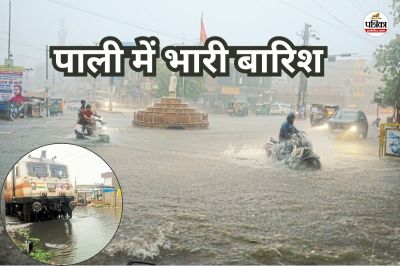 Pali Heavy Rain: राजस्थान के पाली में लगातार दूसरे दिन भी मूसलाधार बारिश का दौर जारी है। भारी बारिश के चलते सड़कें दरिया बन गई है। वहीं, मकानों और दुकानों में बारिश का पानी भर गया है।