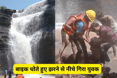 uth drowns while washing bike: एमपी के चांद सिल्वर वॉटरफॉल में बाइक धोते वक्त युवक फिसलकर 100 फीट नीचे गिरा और तेज बहाव में बह गया। मानसून में लोग उफनती नदियों और झरनों को बैरिकेड तोड़कर देखने जा रहे लोग हो रहे हादसे का शिकार। (mp news)