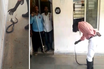 Snake Rescue : रोजाना की तरह शुक्रवार को भी दफ्तर खुला। कर्मचारी अपने अपने कामों में व्यस्त थे। लेकिन, कुछ देर बाद दफ्तर में अचानक लोगों के चीखने चिल्लाने की आवाजें गूंजने लगी। वजह थी एक जहरीली नागिन, जो अचानक ही कार्यालय में आ घुसी थी।
