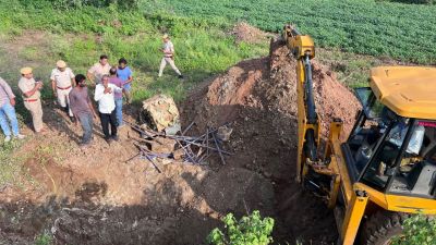 टीमों ने संयुक्त सर्च ऑपरेशन चलाया और जेसीबी की मदद से तीन अलग-अलग स्थानों से एमडी ड्रग्स बनाने के उपकरण हीटर, पाइप, ग्लास सामग्री और कुछ केमिकल ज़मीन से बाहर निकाले और ज़ब्त किए।