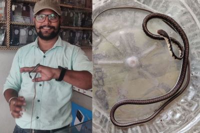 Rajasthan News : राजस्थान के इस जिले में मिला उड़ने वाला सांप। दलोट कस्बे के एक मकान की छत पर दिखाई दिया। सर्प मित्र एवं संस्था के संस्थापक लवकुमार जैन को सूचना मिलते ही पहुंचे, जानें फिर क्या हुआ...