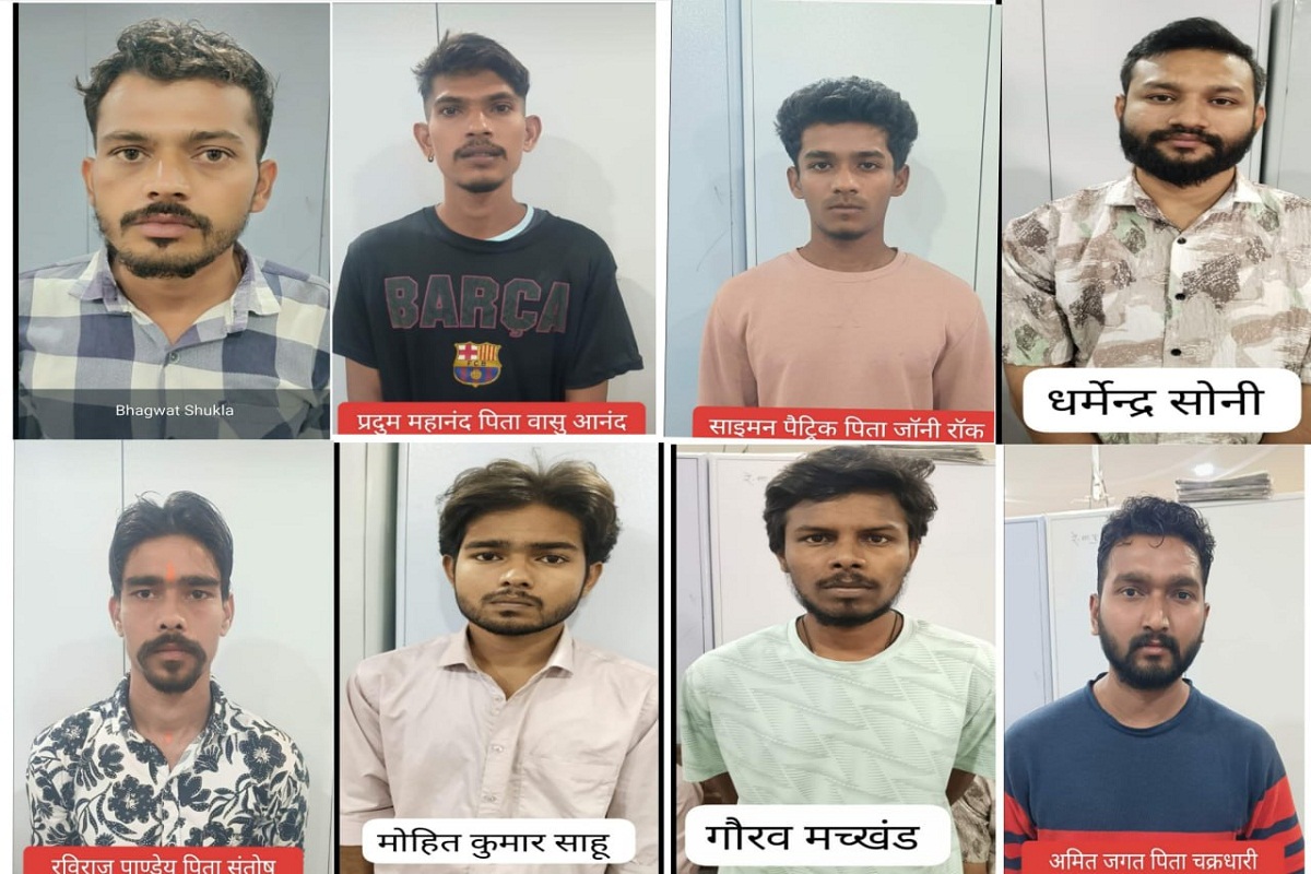 साइबर अपराध के इस मामले में प्रदुम महानंद (23) जमुना वाहल काटा भांजी ओडिसा निवासी, मोहित साहू (20) वार्ड-8 बिरेझर धमतरी निवासी, अमित जगत (30) संतोषी नगर टिकरापारा, धर्मेन्द्र सोनी उर्फ विक्की (31) पटेलपारा कुशालपुर, पुरानी बस्ती निवासी, रविराज पाण्डेय (28) गौरा चौरा, कैलाशपुरी निवासी, साईमन पैट्रिक रॉक (20) सूर्य नगर वार्ड-3 गोगांव निवासी, भगवत प्रसाद शुक्ला (28) ग्राम तूता अभनपुर निवासी और गौरव मच्खंड (24) जल गृह मार्ग थ्री टेपल निवासी गिरफ्तार हुए हैं।