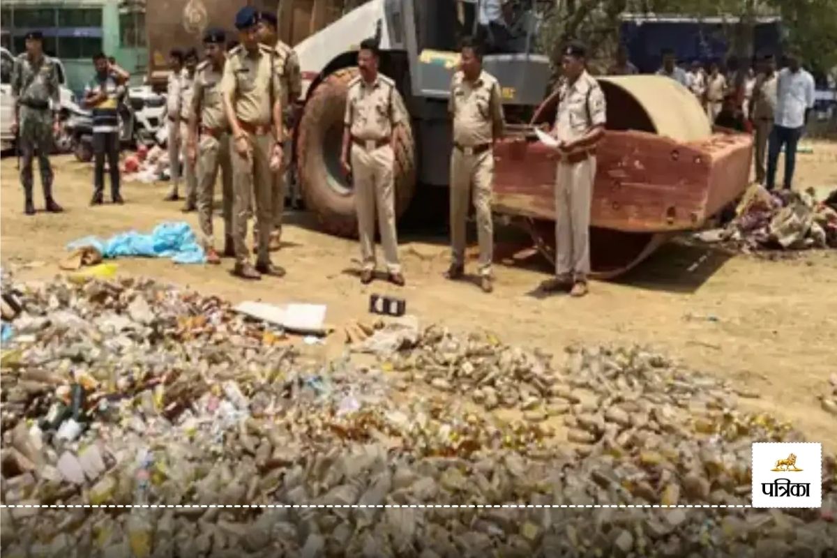 Liquor Destroyed in CG: छत्तीसगढ़ के रायपुर शहर के अलग-अलग थानों में आबकारी अधिनियम के तहत जब्त करीब सवा करोड़ की शराब को पुलिस ने शनिवार को बुलडोजर चलाकर नष्ट किया। 18 हजार लीटर से अधिक शराब थी।