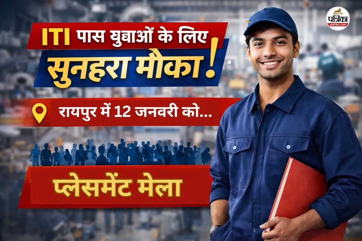 CG ITI Job Placement Camp: छत्तीसगढ़ के शासकीय औद्योगिक प्रशिक्षण संस्था (आईटीआई) रायपुर द्वारा 12 जनवरी 2026 को एक दिवसीय प्लेसमेंट एवं अप्रेंटिसशिप मेला आयोजित किया जा रहा है। यह मेला प्रातः 9:30 बजे से शुरू होगा, जिसमें आईटीआई उत्तीर्ण युवाओं को निजी क्षेत्र की प्रतिष्ठित औद्योगिक इकाइयों में रोजगार और प्रशिक्षण का अवसर मिलेगा।