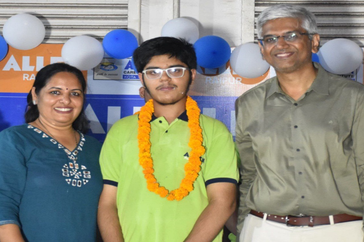 इसके साथ ही हर्श कुमार ने एआईआर- 259, पृथ्वी देवांगना ने 946, प्रद्युन गोंडुले ने 1030 तथा तनीशा अग्रवाल 2407, श्रीसंत कुमार मोहराना 2501, पलाश वर्मा 3068, आर्यन सिंह 4930 और मोनिक मालीवाल 5009 ने आल इंडिया रैंक प्राप्त की है। एलन रायपुर से 3 स्टूडेंट्स टॉप 300 और 31 स्टूडेंट्स टॉप 15,000 में रैंक लेकर आए हैं। एलन कॅरियर इंस्टीट्यूट के सीईओ नितिन कुकरेजा ने बताया कि एलन कॅरियर इंस्टीट्यूट कोटा ने लगातार दूसरे वर्ष क्लासरूम प्रोग्राम से आल इंडिया टॉपर दिया है। कोटा निवासी छात्र राजित गुप्ता ने 360 में से 332 अंक प्राप्त कर आल इंडिया रैंक-1 प्राप्त की है।