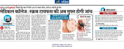छत्तीसगढ़ में सरकारी मेडिकल कॉलेजों में सुविधा नहीं होने के कारण स्क्रब टाइफस की जांच नहीं हो पा रही थी। अब पं. जवाहरलाल नेहरू मेडिकल कॉलेज में इसकी जांच हो रही है। आयुष्मान भारत योजना वालों को कोई शुल्क नहीं देना होगा। वहीं निजी लैब में इसकी जांच में ढाई से तीन हजार रुपए खर्च आता है।