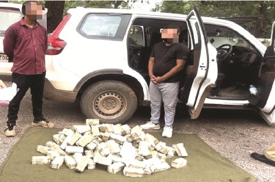 पुलिस के अनुसार वाहन में सवार व्यक्तियों की पहचान पटेल पारस (36 वर्ष) निवासी वडोदरा, गुजरात और पटेल अक्षय (30 वर्ष) निवासी पाटन, गुजरात के रूप में हुई। उनकी संदिग्ध गतिविधियों के चलते पुलिस ने प्रतिष्ठित व्यक्तियों को गवाह बनाकर वीडियोग्राफी के साथ वाहन की तलाशी ली। तलाशी के दौरान सीटों के नीचे बने गुप्त खांचे से भारी मात्रा में नकदी बरामद हुए।