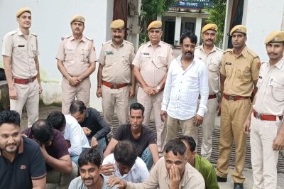रेलमगरा. कस्बे में गुरुवार शाम पुलिस ने एक बंद मकान में छापामार कार्रवाई कर जुए की महफिल को धराशायी कर दिया। इस कार्रवाई में पुलिस ने मौके से 11 जुआरियों को रंगे हाथों पकड़कर उनके पास से कुल 2 लाख 12 हजार 910 रुपये नकद बरामद किए हैं। थानाधिकारी सोनाली शर्मा ने बताया कि उन्हें मुखबिर से सूचना मिली थी कि कस्बे के एक बंद मकान में बड़े स्तर पर जुआ खेला जा रहा है। सूचना की पुष्टि होते ही उनके नेतृत्व में पुलिस दल गठित किया गया, जिसमें सहायक उप निरीक्षक शांतीलाल, जसवंतसिंह, हैड कॉन्स्टेबल विजयसिंह, नरेन्द्रसिंह, खींवराज, कॉन्स्टेबल जयनारायण, जैनकुमार, राकेशकुमार, महेशकुमार व राजेशकुमार शामिल थे। पुलिस दल ने संदिग्ध मकान को चारों ओर से घेरकर मुख्य दरवाजा खोला और भीतर दबिश दी। भीतर का नज़ारा देख पुलिस दल भी हैरान रह गया। वहां जुए की महफिल सजी हुई थी और 11 लोग दांव पर दांव लगा रहे थे। पुलिस ने सभी को मौके से गिरफ्तार कर लिया।पकड़े आरोपी