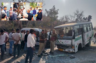 Rajsamand Accident News : टक्कर इतनी जोरदार थी कि दोनों वाहन बुरी तरह से क्षतिग्रस्त हो गए और बस के आगे का पहिया बाहर निकल गया।