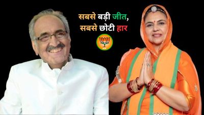 Lok Sabha Election Results 2024: राजस्थान में सबसे ज्यादा मतों से जीत और सबसे कम मतों से जीत बीजेपी के कैंडिडेट्स की ही रही। सबसे बड़ी जीत बीजेपी की राजसंमद कैंडिडेट महिमा कुमारी मेवाड़ की रही और सबसे छोटी जीत बीजेपी की जयपुर ग्रामीण सीट पर राव राजेंद्र सिंह की रही। महिमा कुमारी ने कांग्रेस प्रत्याशी डॉ दामोदर गुर्जर को 3 लाख 92 हजार 223 वोट से हराया। शांतिपूर्ण मतगणना के बाद जिला निर्वाचन अधिकारी डॉ. भंवरलाल ने महिमा कुमारी को सबसे बड़ी जीत पर विजयी घोषित करने के बाद सांसद निर्वाचित होने का प्रमाण पत्र भी दिया।