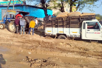 कस्बे के युवा व्यापारी दिनेश सालवी ने बताया कि बस स्टैंड से अंबेडकर सर्किल के मध्य में आधी-अधूरी सडक़ का निर्माण कार्य कराया गया। एक तरफ की तो सडक बना दी, परन्तु दूसरी तरफ की सडक नहीं बनाई गई है, जो सडक बनाई गई उसमे भी सीमेंट सडक़ पर तराई का कार्य भी विगत तीन दिनों से बंद है। ऐसे में उन्होंने अपने प्रतिष्ठान से पानी उपलब्ध कराकर सड़क पर तराई की गई। उन्होंने बताया कि सड़क पर तराई अधूरी रहेगी तो सडक कैसे मजबूत होगी। कस्बे के सामाजिक कार्यकर्ता अमरसिंह डोडिया, शेषमल प्रजापत, रवि सेन, विनोद प्रजापत, पूर्व पंसस. मुकेश शर्मा, दिनेश सालवी, मनोज सेन, मनोहर लाल खटीक, मनोहर दास वैष्णव, रवि सेन आदि कार्यकर्ताओं ने बताया कि सडक़ का कार्य आधा-अधूरा पड़ा हुआ है। वहीं, सड़क के समीप खोदी गई जमीन को पयाप्त रूप से समतलीकरण नहीं करने से रास्ता ऊबड खाबड व कीचडय़ुक्त होने से टेंपो व लोडिंग वाहनों की आवाजाही में काफी अधिक दिक्कत आ रही है। कार्यकर्ताओं ने बताया कि रविवार की दिन में भी पांच लोडिंग वाहन इस कीचड़ में फंस गए, जिसे निकालने में काफी परेशानी का सामना करना पड़ा। एक टेम्पों को तो कीचड़ व दलदल से निकालने के लिए ट्रैक्टर को मौके पर बुलाना पड़ा।