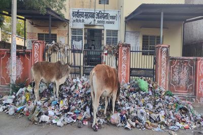 नगर परिषद की ओर से रोड लाईटों का कनेक्शन काटे जाने के बाद देरशाम को कचरे से भरा डम्पर राजनगर स्थित एईएन ऑफिस के मुख्य गेट पर खाली कर दिया। डम्पर को इस तरह खाली किया गया कि आधा कचरा गेट के बाहर और आधा गेट के अंदर भर गया। रात्रि में रोड का कनेक्शन जुडऩे पर सुबह 7.30 बजे करीब नगर परिषद की जेसीबी से कचरा उठवा कर नगर परिषद के कार्मिक से सफाई करवा दी गई।