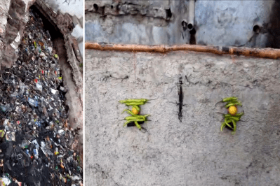 Strange Trick : नालों में कचरे के अंबार से ऊबे शहरवासी। सफाई न होने से लोगों ने किया अनोखा विरोध। गंदगी को नजर से बचाने के लिए लोगों ने नाले की दीवार पर लटकाए निंबू - मीर्च।