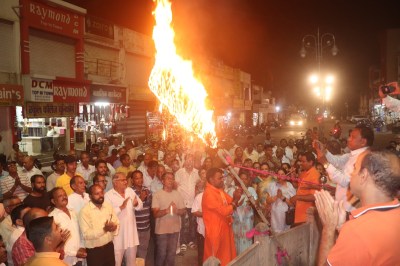 विप्र फाउंडेशन बांसवाड़ा और सनातन धर्म सभा की ओर से तिरुपति प्रसादम घटना के विरोध में मशाल जलाकर आक्रोश सभा का का आयोजन किया गया। गांधी मूर्ति सर्कल पर अंबालाल पंचाल की अध्यक्षता में आयोजित आक्रोश सभा में मुख्य वक्ता सनातन धर्म सभा संयोजक भुवन मुकुंद पंड्या ने आक्रोश व्यक्त किया। उन्होंने कहा कि सनातन समाज, हिंदू समाज के मंदिरों में प्रसाद में चर्बी का प्रयोग निंदनीय और अक्षम्य अपराध है। केंद्र सरकार मंदिरों का रख रखाव सनातन समाज को सुपुर्द करे। साथ ही सनातन संरक्षण बोर्ड को मुख्य मांग बताया।