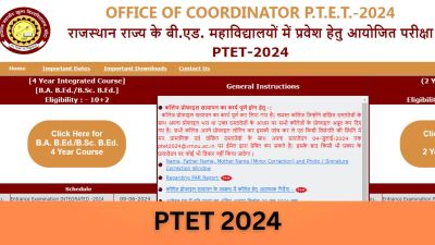 राजस्थान पीटीईटी परीक्षा (Rajasthan PTET Exam) राज्य का आयोजन हर साल होता है। इस परीक्षा के जरिए राज्य के प्रतिभागी संस्थानों द्वारा प्रस्तावित चार वर्षीय बीए-बीएड, चार वर्षीय बीएससी-बीएड और दो वर्षीय बीएड कोर्स में प्रवेश मिलता है।