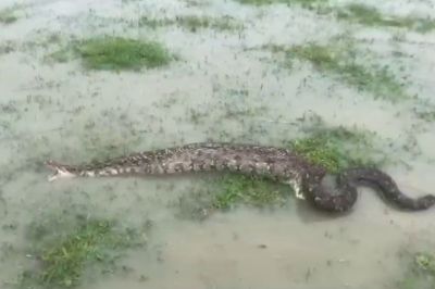 दरअसल, एक किसान खेत में काम करने गया था। उसी दौरान उसे अजगर की आवाज सुनाई दी। जब पास जाकर देखा तो अजगर बिल्ली को निगलकर पड़ा हुआ था। बिल्ली को घंटो निगले रहने के कारण उसकी मौत हो गई। इसके बाद अजगर ने पेट से बिल्ली को बाहर निकाल दिया। इसके किसान ने मौके पर कई ग्रामीणों को एकत्रित कर लिया। जिसके बाद रेस्क्यू शुरु किया गया।