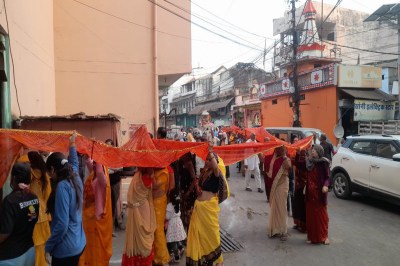 सागर. मां नर्मदा जयंती पर मंगलवार को 161 मीटर की चुनरी यात्रा निकली। यात्रा दोपहर 3 बजे महाकाली मंदिर चमेली चौक से प्रारंभ हुई। जो बड़ा बाजार, कोतवाली, तीनबत्ती से वापस चमेली चौक देव डूठाबली हनुमान मंदिर प्रांगण समाप्त हुई, मां नर्मदा धाम में सभी भक्तों ने पूजन अर्चना कर चुनरी अर्पित की। महाआरती कर महाभोग एवं नर्मदा जल की बॉटल का वितरण कार्यक्रम के संयोजक संतोष सोनी मारुति ने किया। चुनरी यात्रा में सैकड़ों महिलाएं पुरुष भक्तगण मां नर्मदा जी का जयकारा करते हुए जा रहे थे। कार्यक्रम में बद्री प्रसाद शुक्ला, मिंटे महाराज ,प्रदीप पप्पू गुप्ता, नरेंद्र नर्गाच, अरविंद पंडा, नवल किशोर सोनी ,रुपेश सोनी, राजेश जडय़िा, बबलू सोनी, सतीश सोनी, मदन चचोदिया, सीताराम तिवारी सहित अन्य भक्त शामिल हुए।