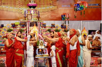 जैन धर्म के इतिहास में पहली बार एक साथ एक स्थान पर 720 समोशरण विधान के 9 वें दिन एक साथ 720 श्रीजी की प्रतिमाओं का अभिषेक व शांतिधारा विद्योदय तीर्थ में रविवार को हुई। मुनि विमल सागर व मुनि अनंत के सानिध्य में सुबह 7 बजे से शांतिधारा हुई। तीन शांति धारा बोलियों के माध्यम से हुई।
