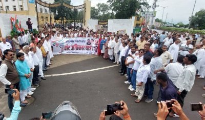 सागर. अखिल भारतीय राष्ट्रीय कांग्रेस कमेटी और प्रदेश कांग्रेस कमेटी के आह्वान पर सोमवार को जिला शहर कांग्रेस ने वोट अधिकार यात्रा निकाली। कांग्रेस कार्यकर्ता होटल जीवन रेन बसेरा के सामने चौराहे पर जमा हुए और फिर वहां से वोट चोर गद्दी छोड़ के नारे लगाते कलेक्ट्रेट तक पदयात्रा करते हुए पहुंचे। कलेक्ट्रेट पहुंचकर कांग्रेस कार्यकर्ताओं ने केंद्र व राज्य सरकार के विरुद्ध नारेबाजी की और फिर राष्ट्रपति के नाम ज्ञापन सौंपा। वहीं दूसरा ज्ञापन प्रदेश अध्यक्ष जीतू पटवारी पर रतलाम जिले में हुए हमले के विरोध में डीजीपी के नाम ज्ञापन सौंपा गया और संबंधितों के विरुद्ध कार्रवाई की मांग की। इस अवसर पर जिला शहर कांग्रेस अध्यक्ष महेश जाटव ने कहा कि निर्वाचन आयोग जिस तरह से स्वतंत्र संस्था होने के बाद भी भाजपा के लिए कार्य कर रहा है, यह निंदनीय है। हम वोट अधिकार यात्रा को चरणबद्ध चलाकर वार्ड और बूथ स्तर पर चलाकर आमजनता के बीच जाएंगे। पूर्व विधायक सुनील जैन ने कहा कि राहुल गांधी की वोट अधिकार यात्रा ऐतिहासिक रही। आम जनता जाग चुकी है। जिला कांग्रेस प्रवक्ता आशीष ज्योतिषी ने कहा कि भाजपा देश में तानाशाही शासन स्थापित करना चाहती है।