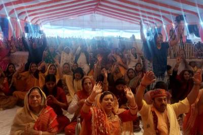 राजघाट पर चल रही संगीतमय भागवत कथा। कथा को विभिन्न प्रसंगों के साथ समझाया गया। इस मौके पर कथा पंडाल में बड़ी संख्या में भक्त मौजूद रहे।