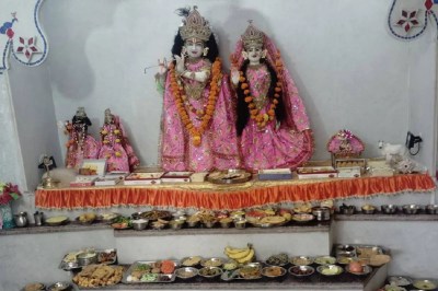 युगलकिशोर सरकार को विभिन्न प्रकार के मौसमी फलों, पकवानों और मिठाइयों का छप्पन भोग भगवान को अर्पित कर पूजा- अर्चना की। भाेग के बाद लोगों को प्रसादी वितरित की गई।