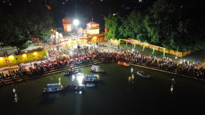 रोशनी से जगमग हो उठा गणेश घाट, बड़ी संख्या में शामिल हुए श्रद्धालु