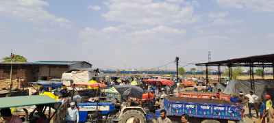 मंडी में अपनी बारी के इंतजार में धूप व गर्मी से बचने के लिए ट्रैक्टर-ट्रॉलियों के नीचे बैठकर समय गुजार रहे हैं। खुले मंडी परिसर व खेत में बैठकर किसान बोली का इंतजार करने को मजबूर हैं।