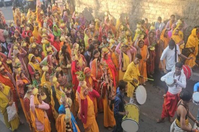 सागर. राष्ट्रीय संत चिन्मयानंद बापू की राम कथा का आयोजन 15 से 21 दिसम्बर तक खेल परिसर के बाजू वाले मैदान में किया जा रहा है। कथा के पहले शनिवार को दोपहर 02 बजे से रामबाग मंदिर बड़ा बाजार से भव्य कलश यात्रा निकाली गई। जो कोतवाली, तीनबत्ती, परकोटा, बस स्टैंड से होती हुए कथा स्थल पर पहुंची। कलश यात्रा में सैंकड़ों की संख्या में मात्र शक्ति पीले वस्त्र में कलश लेकर चल रही थीं। कलश यात्रा में छोटी-छोटी बेटियां घोड़े पर सवार होकर ध्वज लेकर बैठीं हुई थी। राम, लक्ष्माण, सीता एवं हनुमान की मनमोहक झांकी आकर्षण का केन्द्र बनी हुई थी। राष्ट्रीय संत चिन्मयानंद बापू एवं मुख्य यजमान प्रतिभा तिवारी, डॉ. अनिल तिवारी एवं शिवशंकर मिश्रा विराजमान थे। रथ के आगे अखाड़े, ढोलबाजे, डमरूदल के साथ बड़ी संख्या में भक्त शामिल थे। शाम 06 बजे कलश यात्रा का समापन कथा स्थल पर हुआ। बड़ा बाजार में मंडल अध्यक्ष रितेश मिश्रा ने स्वागत किया। कोतवाली पर रिछारिया मिष्ठान भण्डार के परिवार जनों ने स्वागत किया। तीनबत्ती पर कांग्रेस जिला अध्यक्ष राजकुमार पचैरी, ग्रामीण अध्यक्ष आनंद अहिरवार, सुरेन्द्र चैधरी, लक्ष्मण सिंह, अनिल दुबे, पप्पू तिवारी, मनोज शुक्ला शैलेंद्र तोमर और देवेन्द्र तोमर सहित बड़ी संख्या में लोगों ने बापू जी का पुष्प माला पहनाकर स्वागत किया। कलश यात्रा में रामअवतार पाण्डे, तरूण बडौनिया, अशोक उपाध्याय, मयंक वैद्य, अनिल दुबे, एड. रविन्द्र अवस्थी, निर्भय घोषी, दिलीप रैकवार, राजेश पारासर, अंकित विश्वकर्मा एवं देवेन्द्र मिश्र सहित बड़ी संख्या में भक्त शामिल थे।