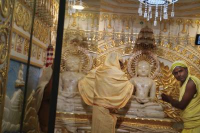अतिशय क्षेत्र काकागंज में आदिनाथ जयंती पर आचार्य निर्भय सागर महाराज के सानिध्य में महामस्तकाभिषेक हुआ।