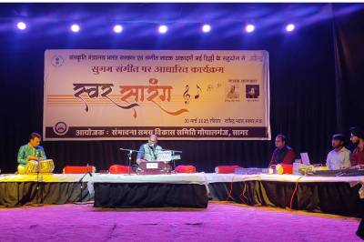 रविंद्र भवन में स्वर सारंग कार्यक्रम का आयोजन किया गया। कार्यक्रम में गजल और गीतों की प्रस्तुति हुई और देर रात तक महफिल सजी रही और दर्शकों ने आनंद लिया। संस्कृति मंत्रालय केंद्र सरकार व संगीत नाटक अकादमी नई दिल्ली के सहयोग से आयोजित स्वर सारंग कार्यक्रम के मुख्य अतिथि अध्यक्ष डॉ. अशोक कुमार तिवारी थे। विशिष्ट अतिथि संयुक्त संचालक डॉ. मनीष वर्मा रहे। अतिथियों ने कहा कि आज हर व्यक्ति मनोरंजन और शांति के कुछ पल चाहता है। संभावना समग्र विकास समिति ने कार्यक्रम प्रस्तुत कर लोगों की इस जरूरत को पूरा करने का प्रयास किया है। कार्यक्रम में सागर के गायक मितेंद्र सिंह सेंगर और स्तुति खम्परिया ने अलग-अलग गजल-गीतों के साथ ही युगल रूप से भी गीत व गजलों की प्रस्तुतियां दीं। कलाकारों की इन प्रस्तुतियों पर दर्शकों ने अपनी तालियों के साथ सराहना की। कार्यक्रम में संगीत संयोजन अर्पित तिवारी और शैलेंद्र सिंह राजपूत व उनके साथी कलाकारों का रहा। संयोजक रचना तिवारी, मंच संचालन डॉ. रविंद्र टांक व मंच सज्जा का कार्य राजीव जाट ने देखा। प्रस्तुति सहयोग में सतीश साहू, निधि मिश्रा, आशीष खटीक, राहुल चौरसिया, प्रकाश कुशवाहा, कपिल चौरसिया, पवन चौरसिया और रामसिंह ठाकुर आदि रहे।