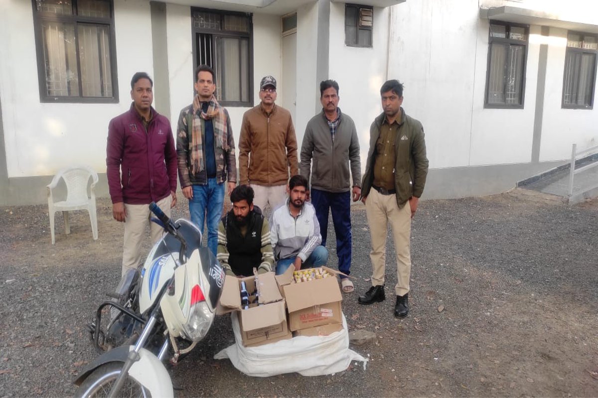 जानकारी के अनुसार पुलिस के लिए सूचना मिली थी कि दो व्यक्ति मोटरसाइकिल से बोरी में भरकर अवैध शराब लेकर जा रहे हैं। जानकारी लगते ही पुलिस मौके पर पहुंची, जिन्होंने जनपद पंचायत कार्यालय भीम वार्ड की ओर आ रही मोटरसाइकिल क्रमांक एमपी 15 एमएक्स 3013 पर सवार दो युवकों को पुलिस ने रोककर पूछताछ की, तो उनके पास दो बोरियों में 63 लीटर शराब कीमत 37 हजार 200 रुपए मिली, जिसे पुलिस ने जब्त कर लिया। पकड़े गए आरोपियों ने अमित पिता जगत सिंह कुशवाहा (26) निवासी निवारी थाना खिमलासा, अनिल पिता मुन्नालाल सेन (20) निवासी हिरनछिपा बताया। जिनके खिलाफ पुलिस ने 34(2) के तहत मामला दर्ज कर, उन्हें न्यायालय में पेश किया। जहां से उन्हें जेल भेज दिया। कार्रवाई में थाना प्रभारी अनूप यादव, एसआइ कविता द्विवेदी, एसआइ शैलेंद्र सिंह, प्रधान आरक्षक अजय सिंह राजपूत, यूनुस खान, आरक्षक दिलीप कुर्मी, सुभाष मौर्य, गोपाल तोमर एवं आरक्षक देवेंद्र यादव का अहम भूमिका रही।