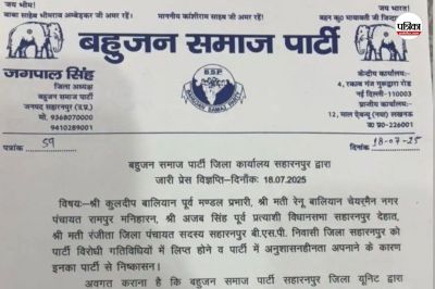 Action : बसपा यानी बहुजन समाज पार्टी (BSP ) ने सहारनपुर में अपने चार सीनियर नेताओं को पार्टी से बाहर कर दिया है। इनमें एक जिला पंचायत सदस्य और एक नगर पंचायत चेयरमैन भी शामिल हैं। पार्टी जिलाध्यक्ष का कहना है कि जिन लोगों को बाहर का रास्ता दिखाया गया है वो लगातार पार्टी विरोधी गतिविधियों में संलिप्त थे। बार-बार चेताने के बाद भी इनमें कोई सुधार नहीं हो रहा था। इसलिए इन्हे पार्टी से बाहर का रास्ता दिखाया गया है।