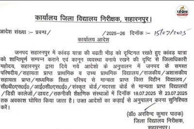 School closed : कांवड़ यात्रा के लिए जिलाधिकारी ने स्कूलों की छुट्टी करने के आदेश जारी कर दिए हैं। सहारनपुर जिलाधिकारी की ओर से जारी किए गए आदेशों के अनुसार सभी तरह के शैक्षिक संस्थानों में 23 जुलाई तक अवकाश रहेगा। इस अवधि में कोई संस्थान नहीं खुलेगा।