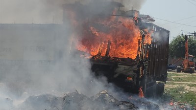Sambhal News Today: संभल के चंदौसी रोड पर सोमवार दोपहर एक बड़ी आग की घटना सामने आई। पुलिस चौकी से लगभग 10 किलोमीटर दूर कूड़े के ढेर पर खड़े एक ट्रक में अचानक आग लग गई। देखते ही देखते आग की चपेट में पास खड़ा एक और ट्रक भी आ गया।
